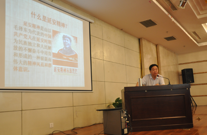 次日上午,特邀曾任延安市委黨校副校長的劉光勝教授做了《延安精神及時代價值》主題黨課教育。劉教授從延安精神形成和發(fā)展的歷史條件、形成過程、基本理論,以及在新的歷史時期如何繼承、發(fā)揚延安精神四個方面進行了系統(tǒng)性論述,并著重講解了在新的歷史時期,如何堅持堅定正確的政治方向;如何堅持解放思想、實事求是的思想路線;如何堅持全心全意為人民服務(wù)的根本宗旨;如何堅持自力更生、艱苦奮斗的創(chuàng)業(yè)精神,進而更好地繼承和發(fā)揚延安精神。