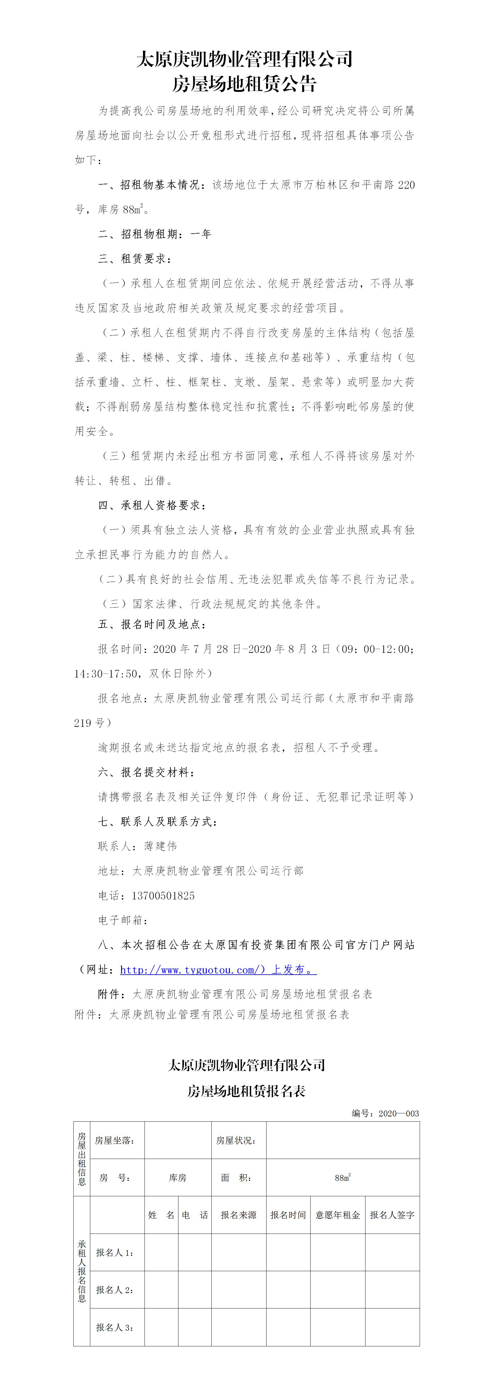 太原庚凱物業(yè)管理有限公司房屋場地租賃公告(三)