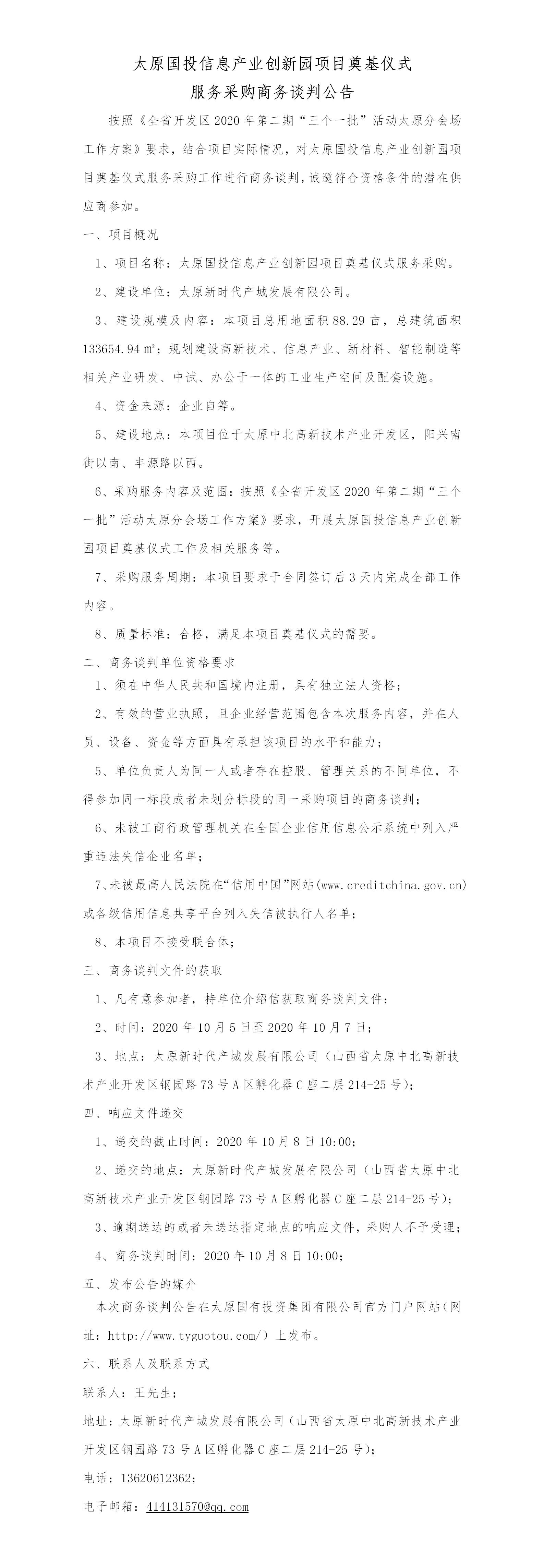太原國投信息產(chǎn)業(yè)創(chuàng)新園項(xiàng)目奠基儀式服務(wù)采購商務(wù)談判公告.docx