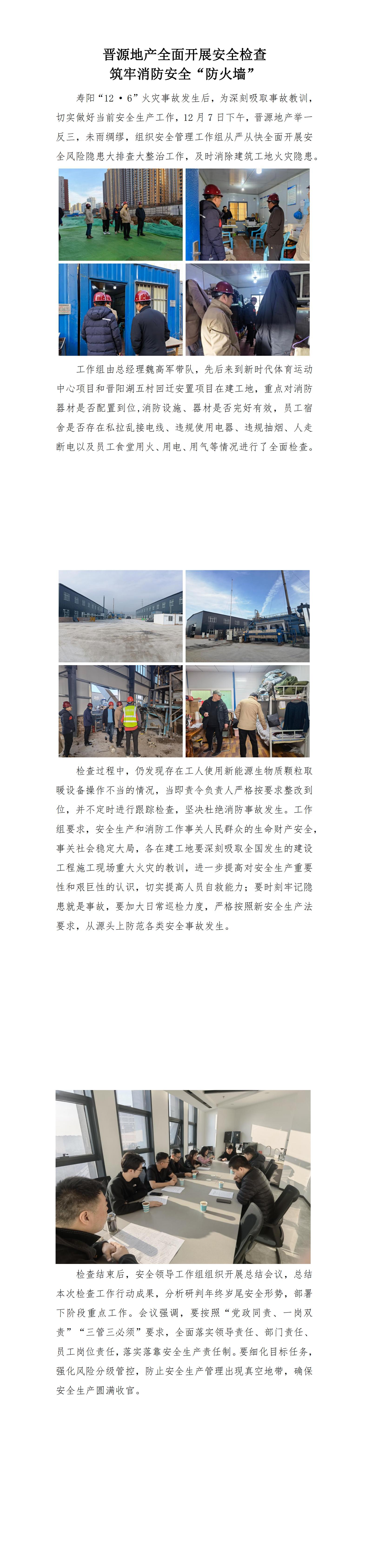 晉源地產全面開展安全檢查,筑牢消防安全“防火墻”