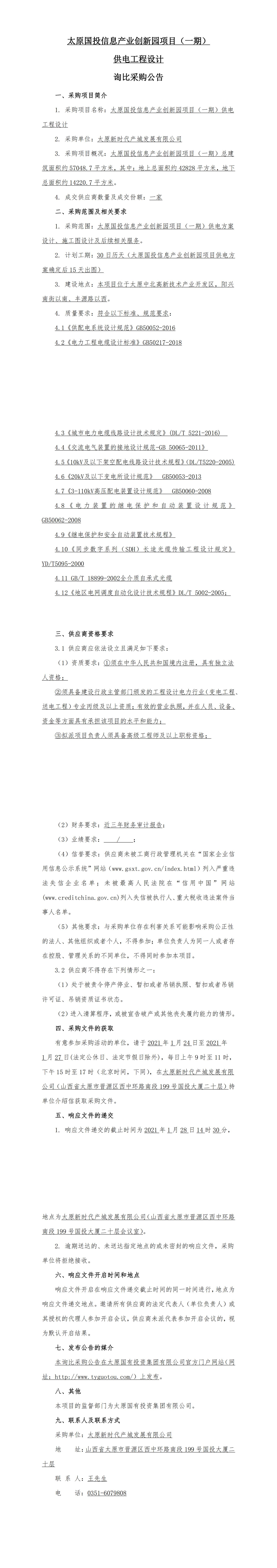 太原國投信息產(chǎn)業(yè)創(chuàng)新園項(xiàng)目(一期)供電工程設(shè)計(jì)詢比采購公告