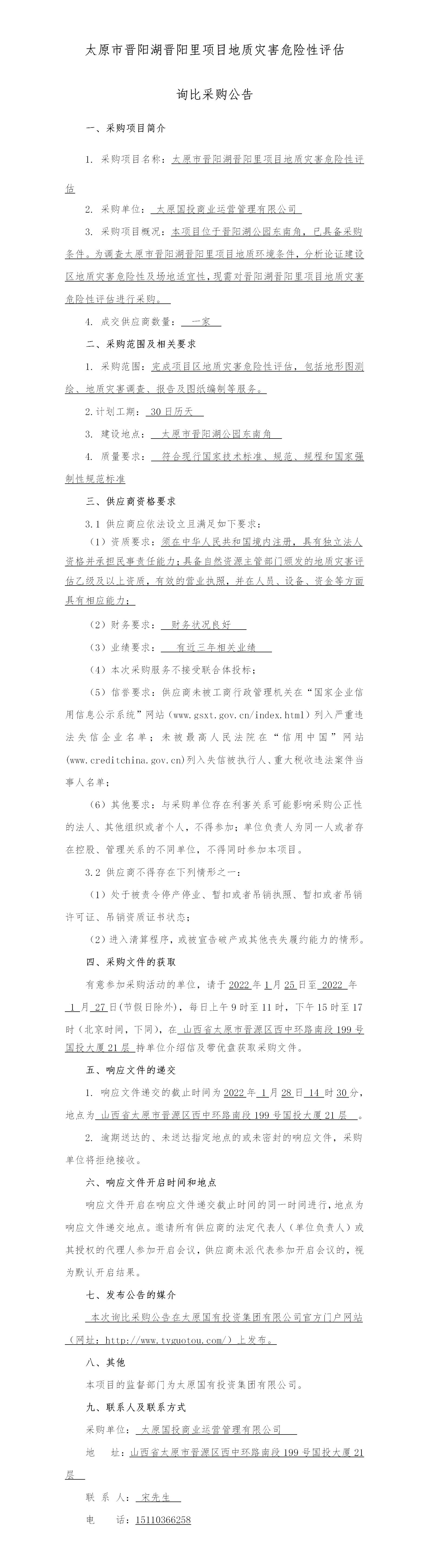 太原市晉陽(yáng)湖晉陽(yáng)里項(xiàng)目地質(zhì)災(zāi)害危險(xiǎn)性評(píng)估詢價(jià)采購(gòu)公告