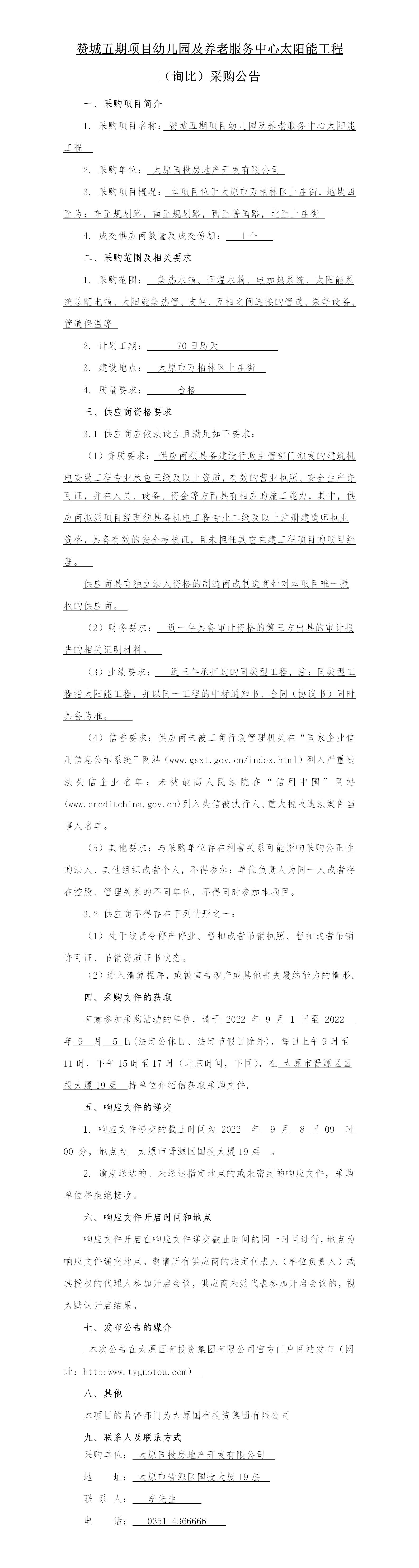 贊城五期項目幼兒園及養(yǎng)老服務(wù)中心太陽能工程詢比采購公告