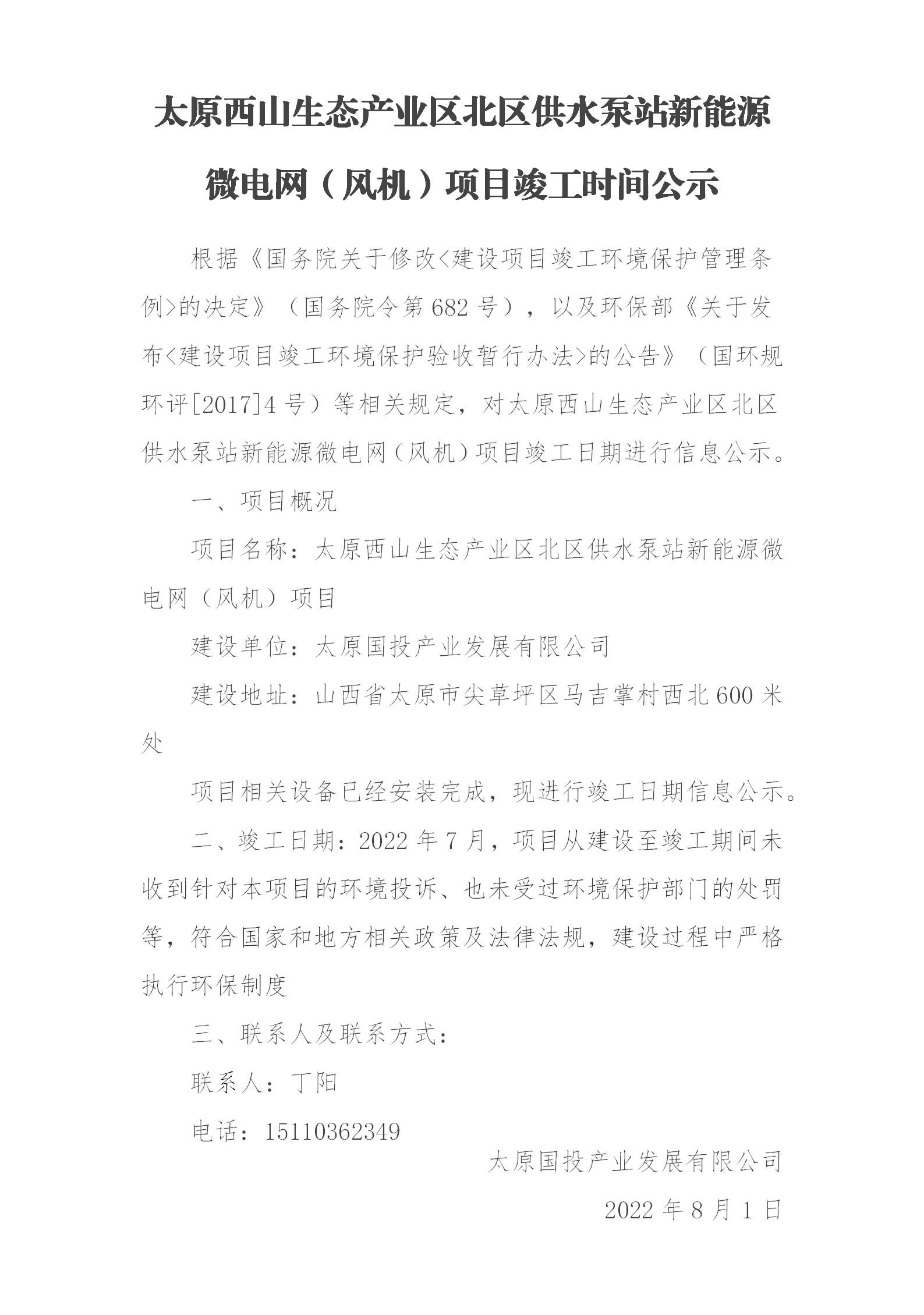 太原西山生態(tài)產(chǎn)業(yè)區(qū)北區(qū)供水泵站新能源微電網(wǎng)(風機)項目竣工公示