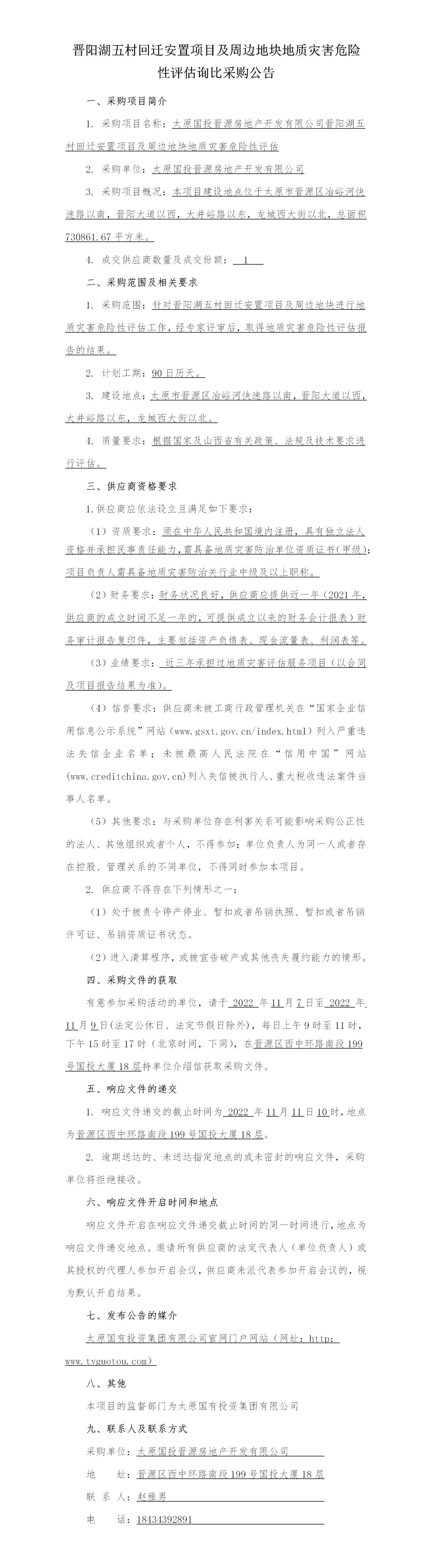 晉陽湖五村回遷安置項目及周邊地塊地質(zhì)災(zāi)害危險性評估詢比采購公告