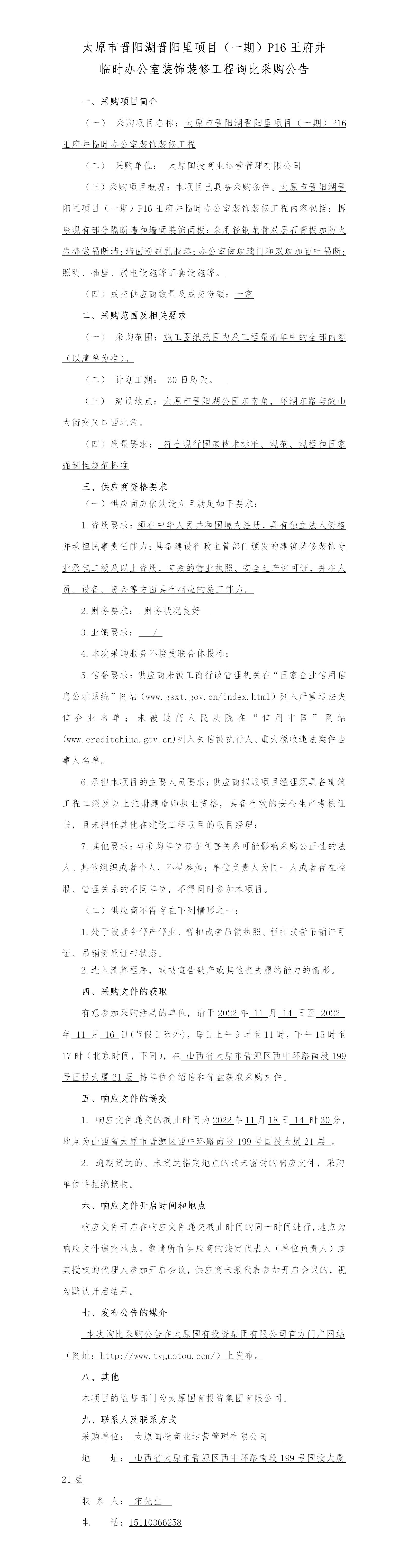太原市晉陽湖晉陽里項目(一期)P16王府井 臨時辦公室裝飾裝修工程詢比采購公告