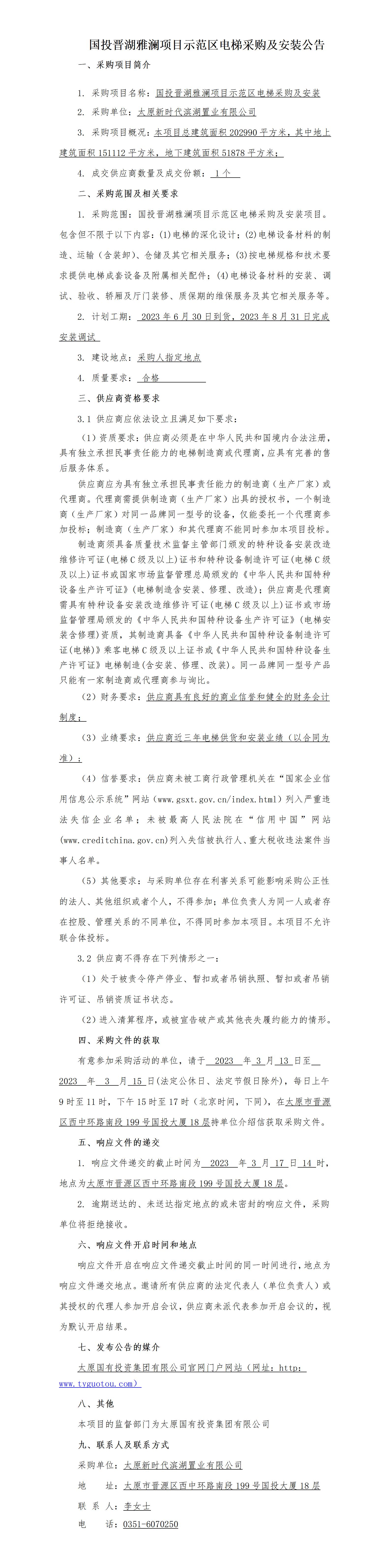 晉湖雅瀾項(xiàng)目示范區(qū)電梯采購(gòu)及安裝詢比公告