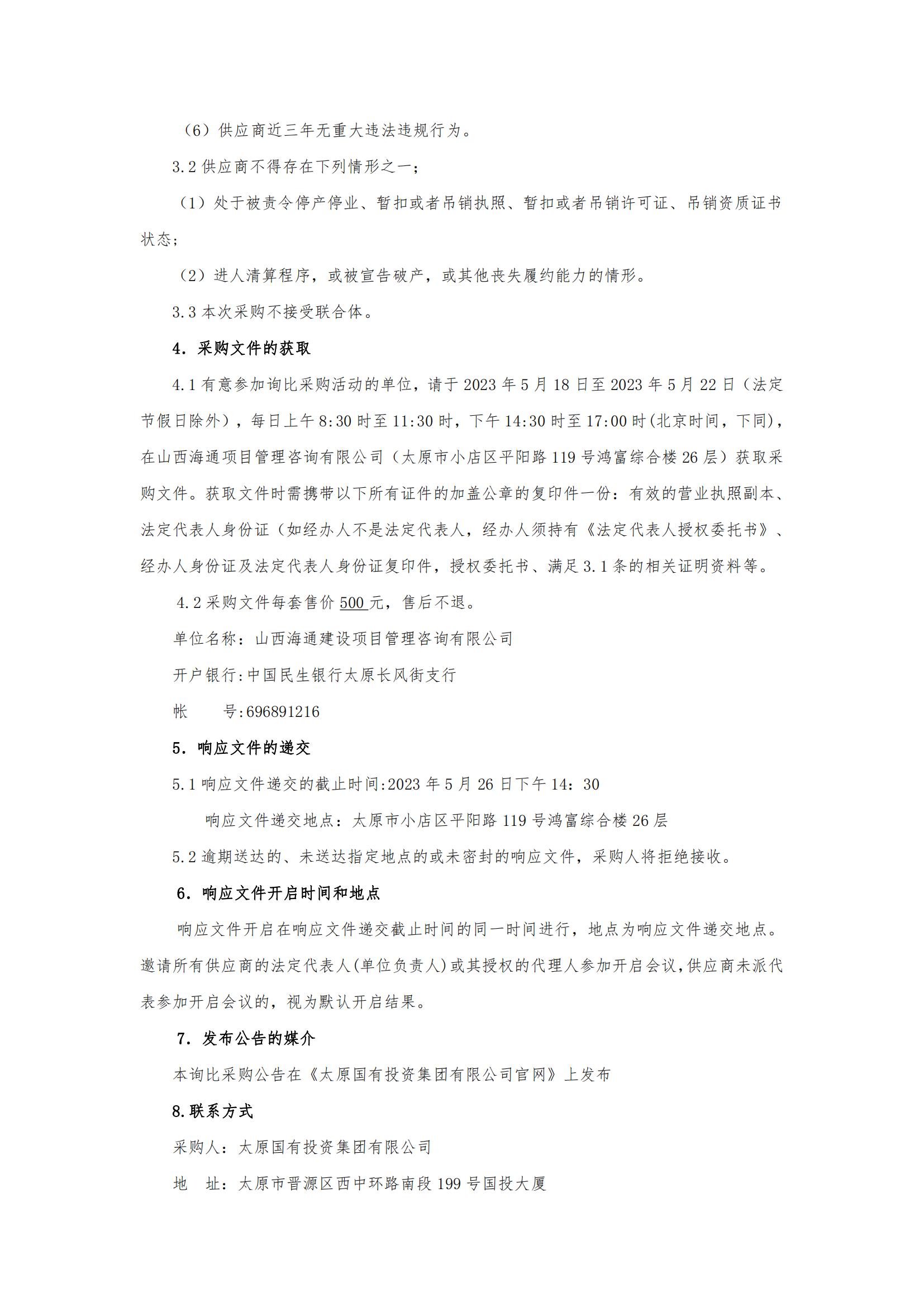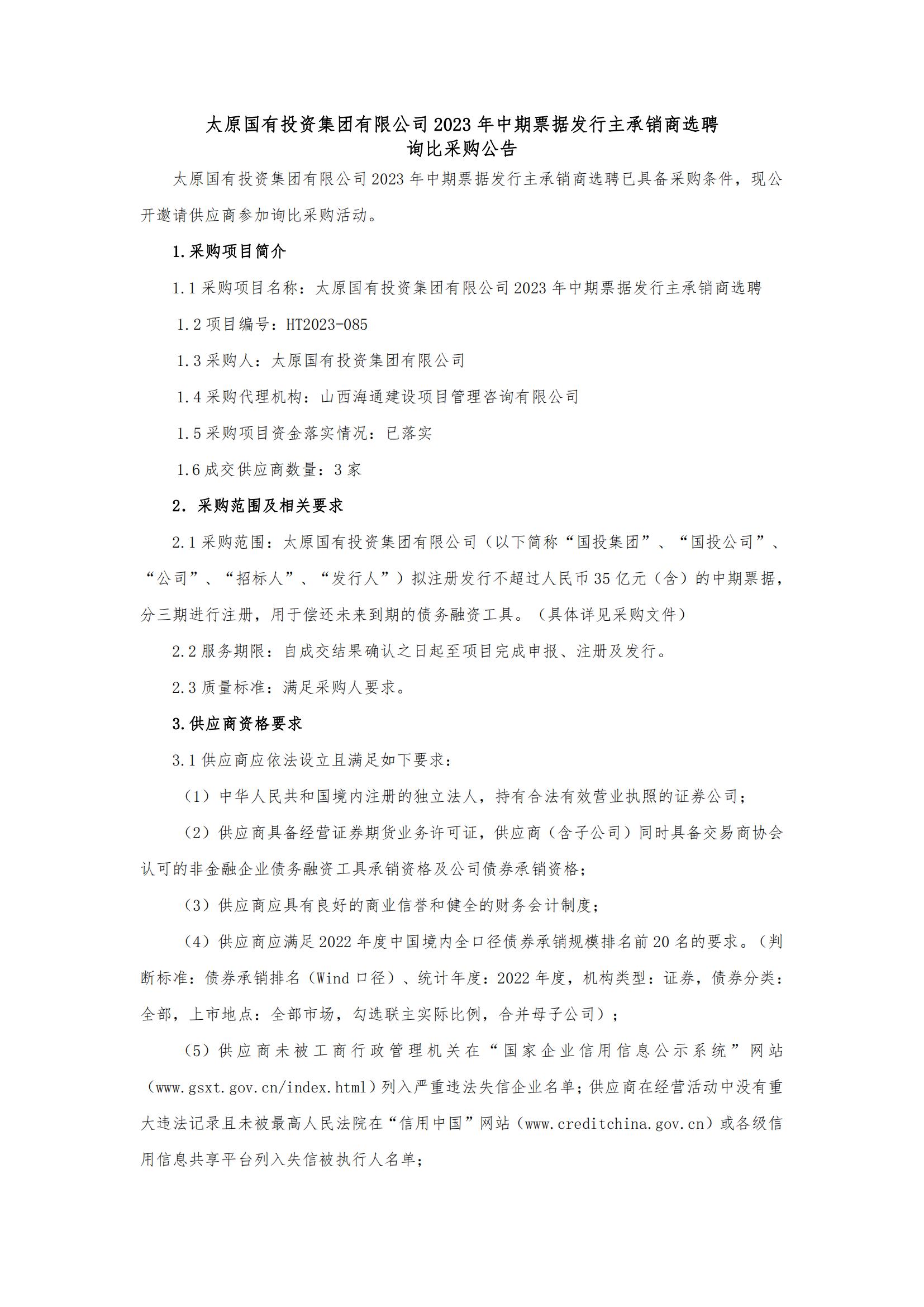 太原國有投資集團有限公司2023年中期票據(jù)發(fā)行主承銷商選聘詢比采購公告