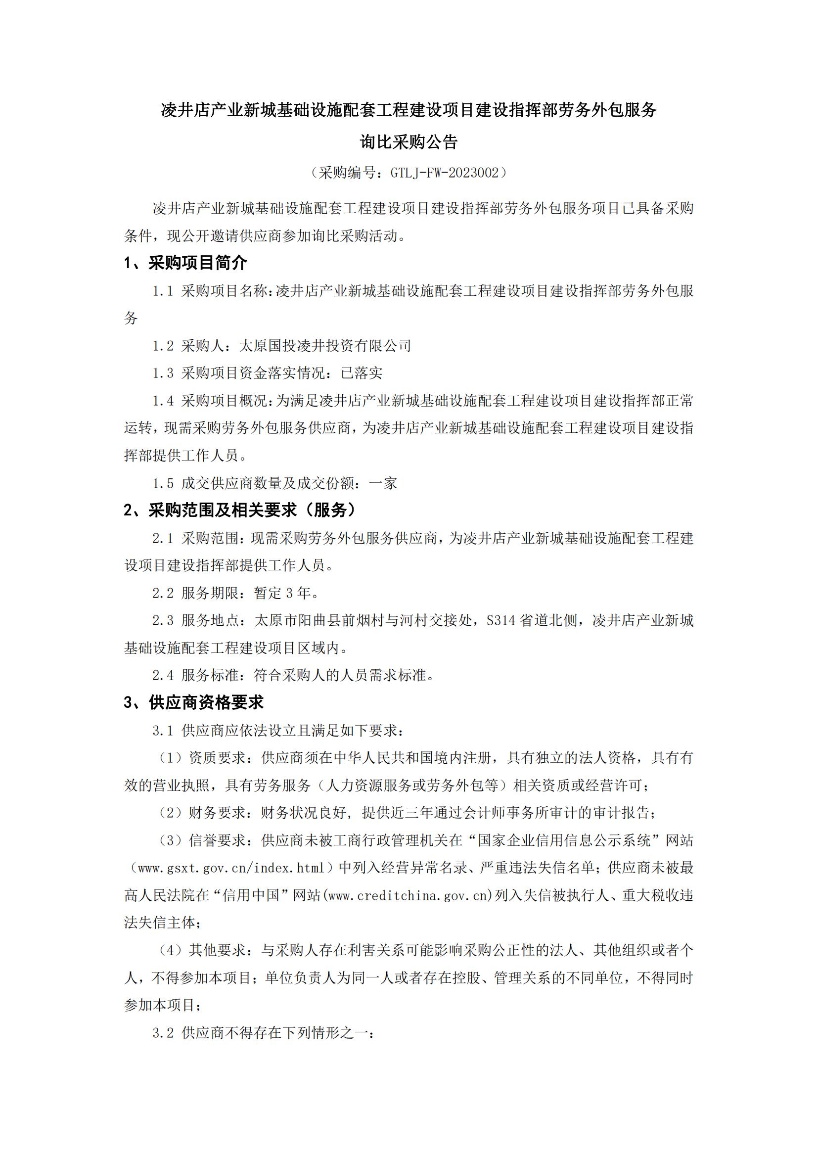 凌井店產(chǎn)業(yè)新城基礎設施配套工程建設項目建設指揮部勞務外包服務 詢比采購公告