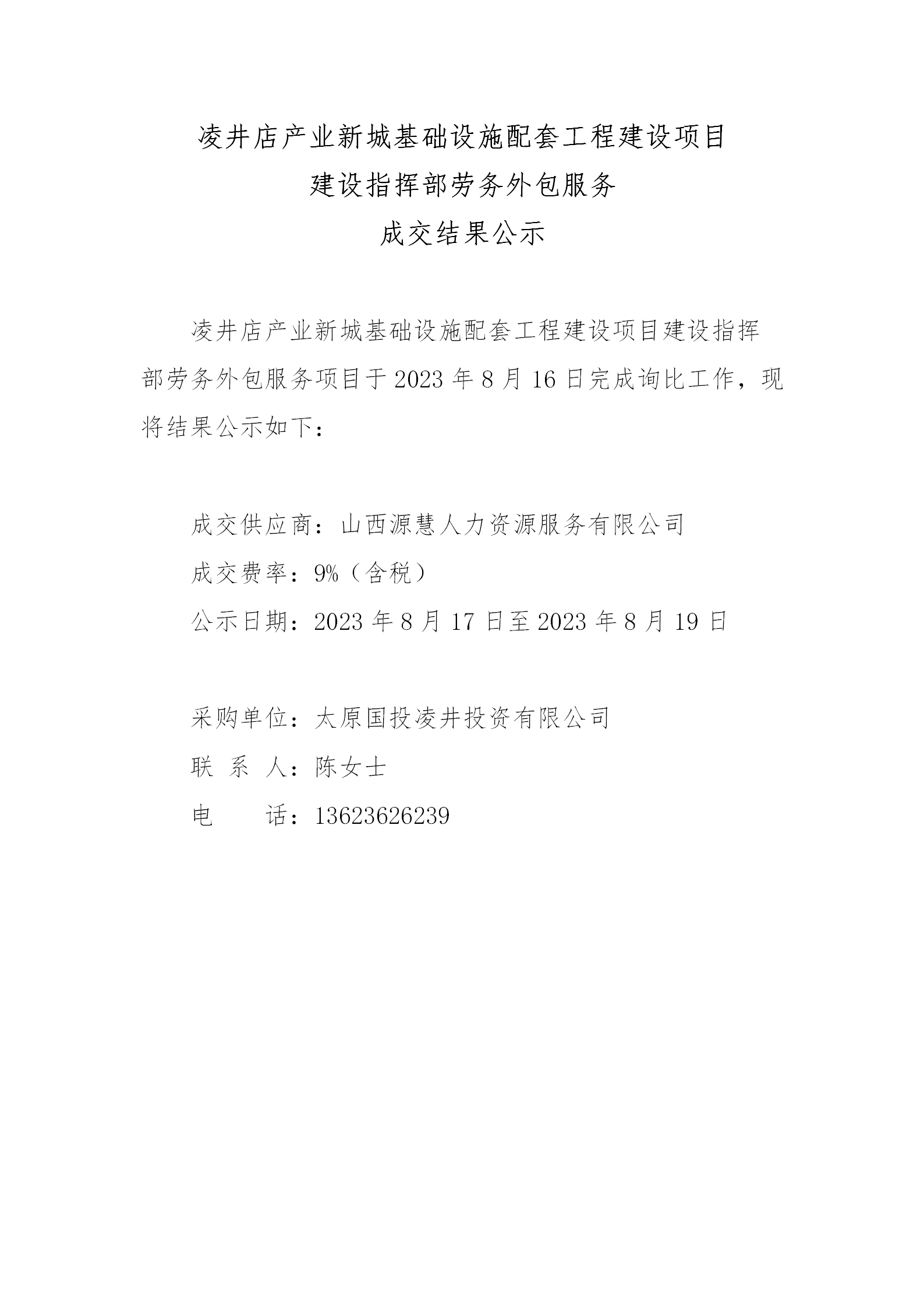 凌井店產(chǎn)業(yè)新城基礎設施配套工程建設項目建設指揮部勞務外包服務成交結(jié)果公示