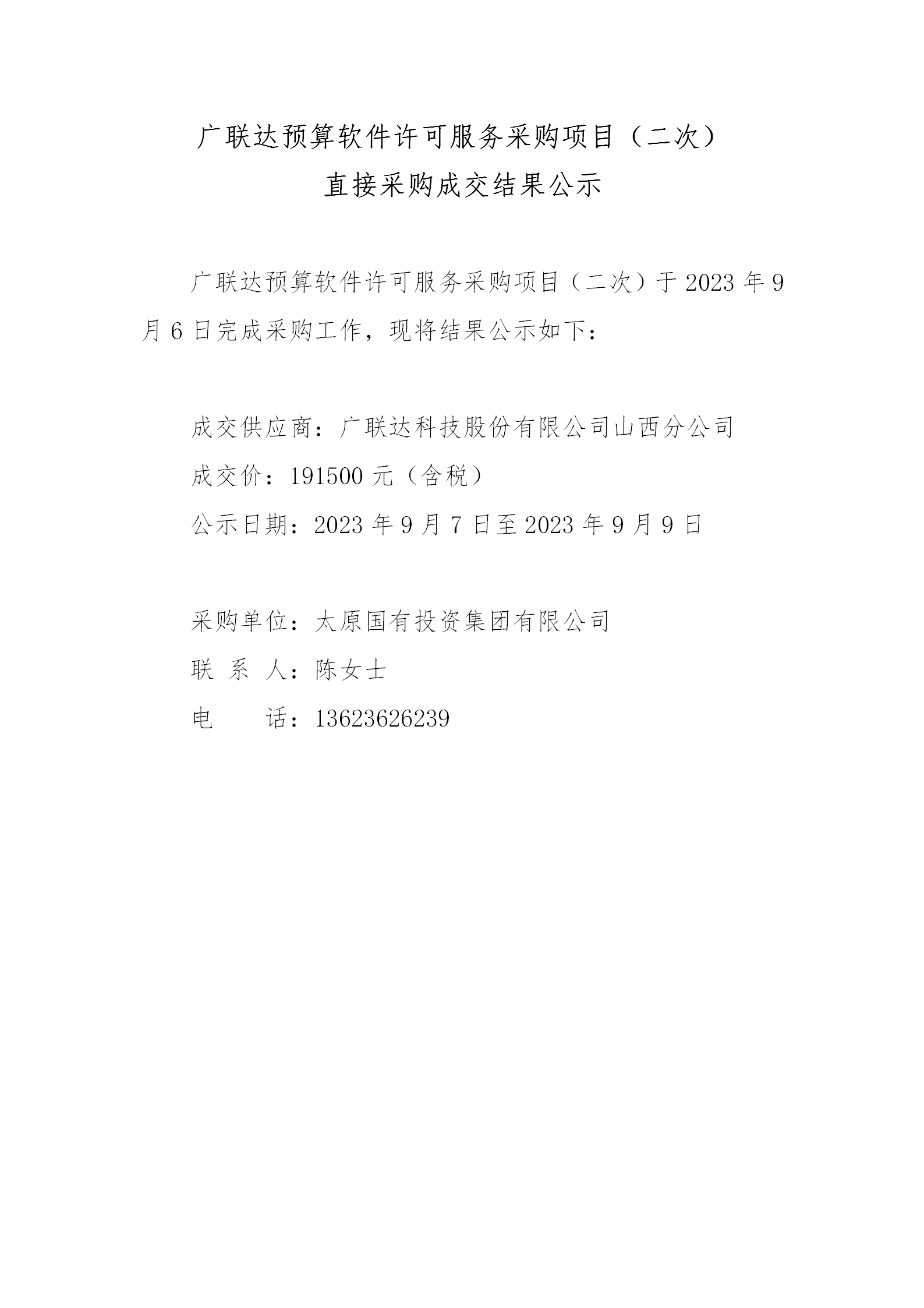廣聯(lián)達(dá)預(yù)算軟件許可服務(wù)采購項目(二次)直接采購成交結(jié)果公示