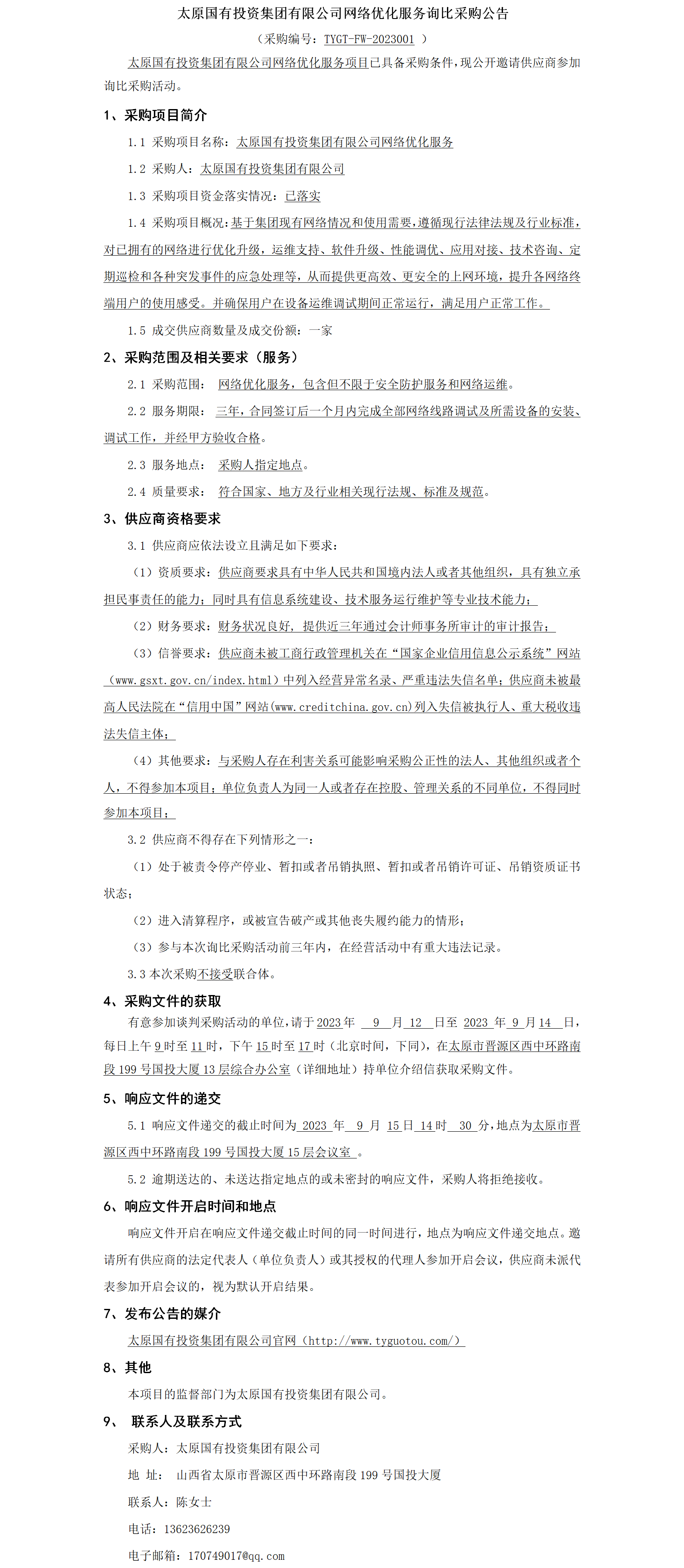 網(wǎng)絡(luò)優(yōu)化服務(wù)詢比采購公告