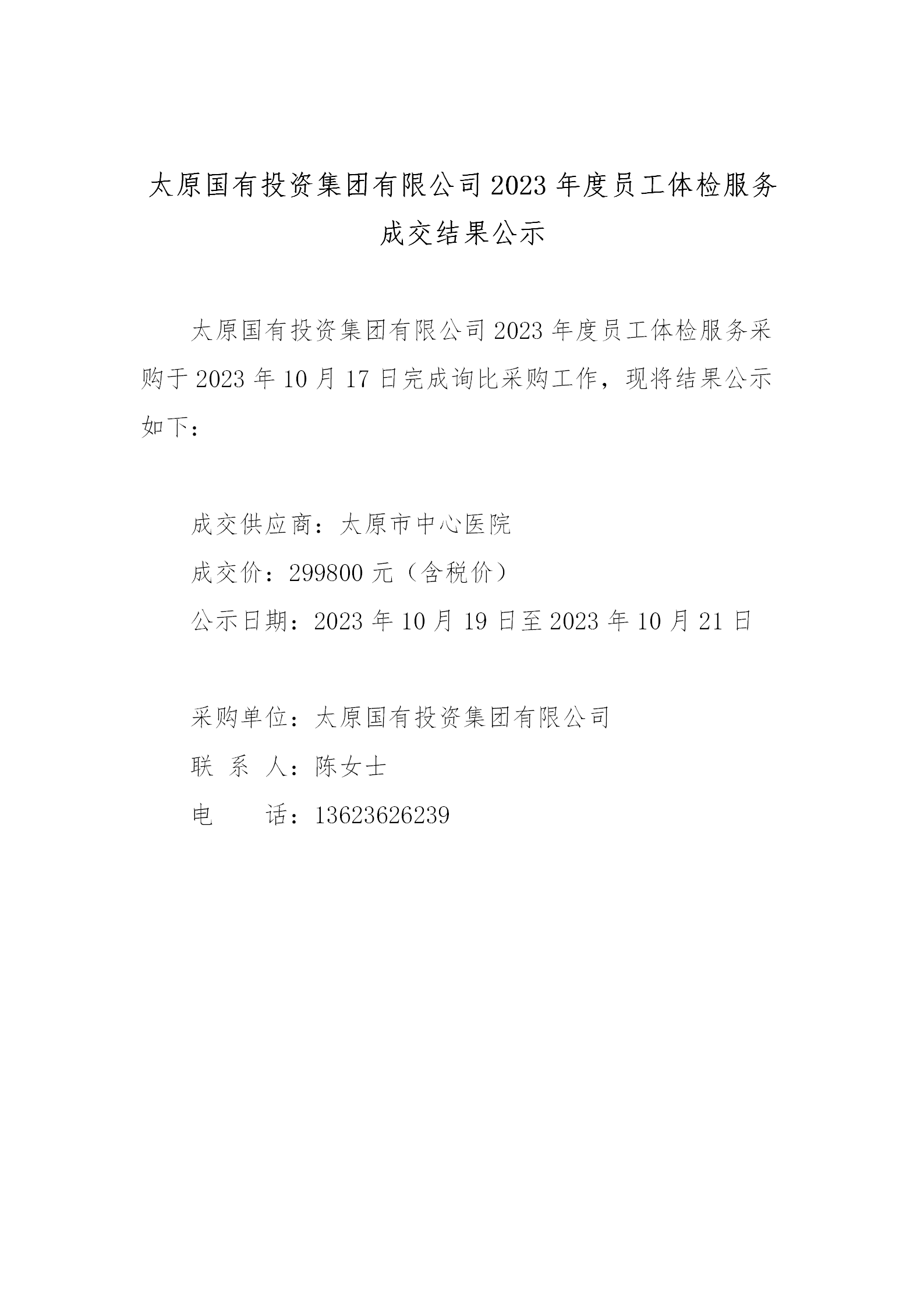 太原國有投資集團(tuán)有限公司2023年度員工體檢服務(wù)項(xiàng)目詢比采購結(jié)果公示