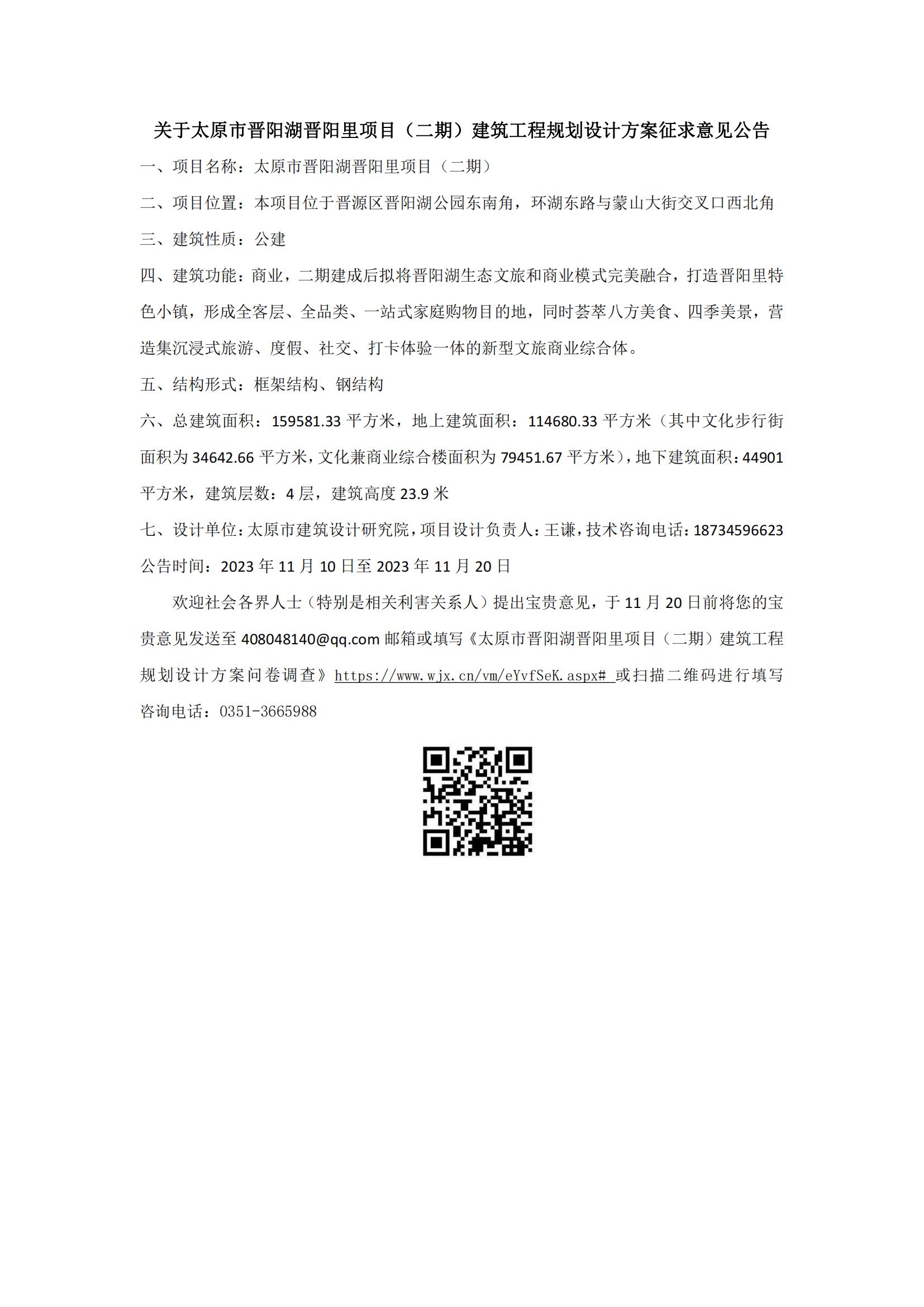 關(guān)于太原市晉陽(yáng)湖晉陽(yáng)里項(xiàng)目(二期)建筑工程規(guī)劃設(shè)計(jì)方案征求意見公告
