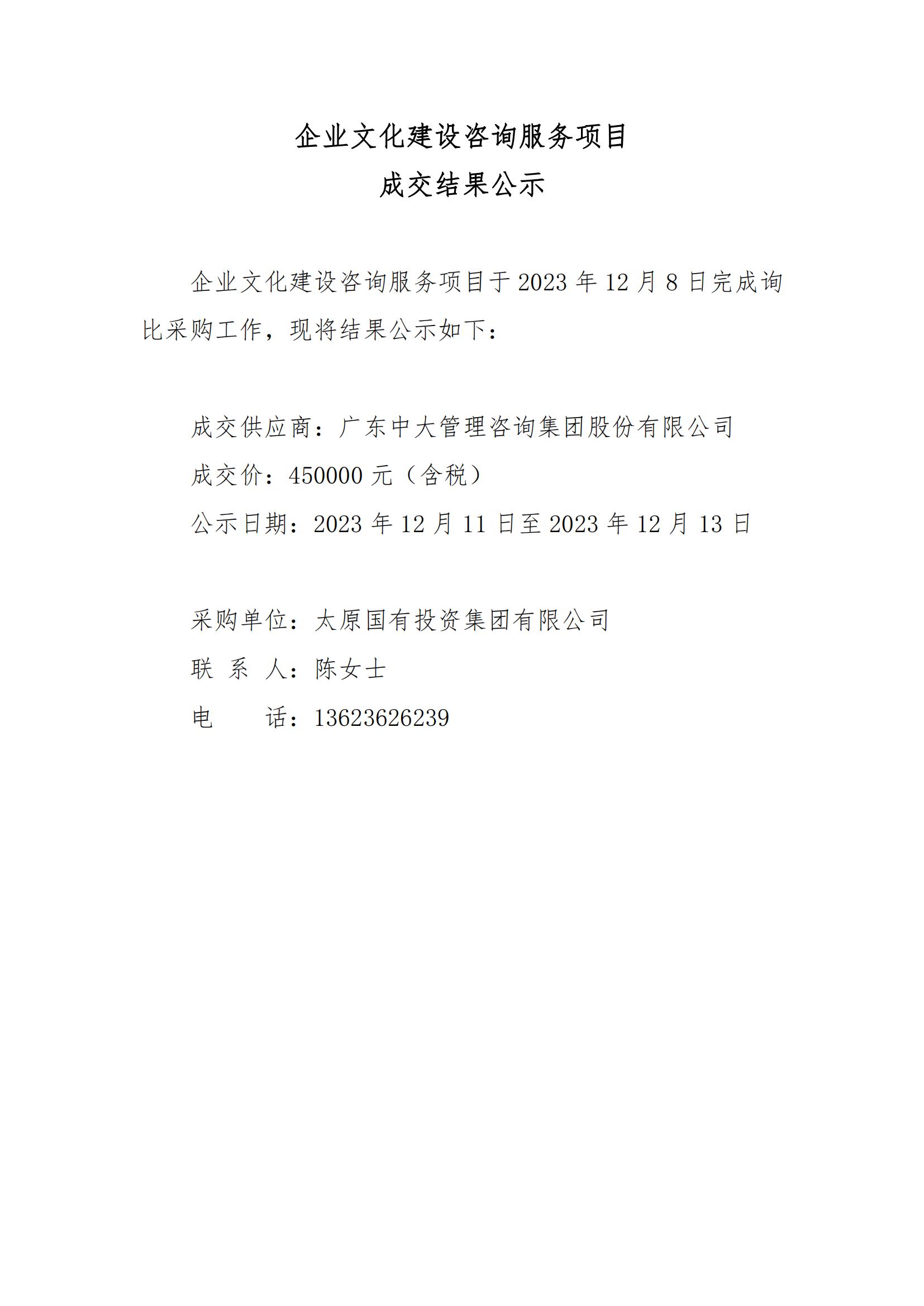 企業(yè)文化建設(shè)咨詢服務(wù)項(xiàng)目成交結(jié)果公示