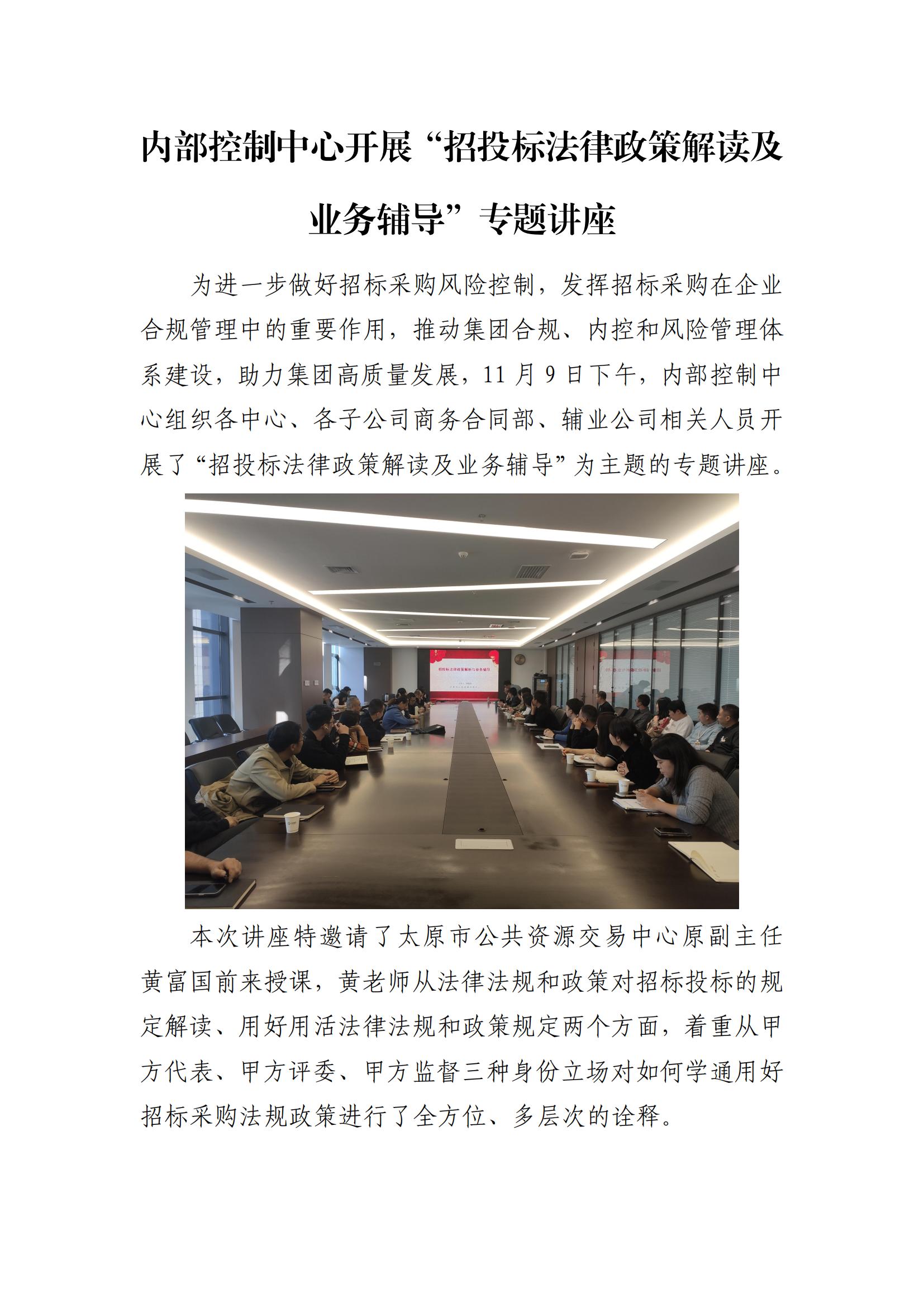 內(nèi)部控制中心開展“招投標(biāo)法律政策解讀及業(yè)務(wù)輔導(dǎo)”專題講座