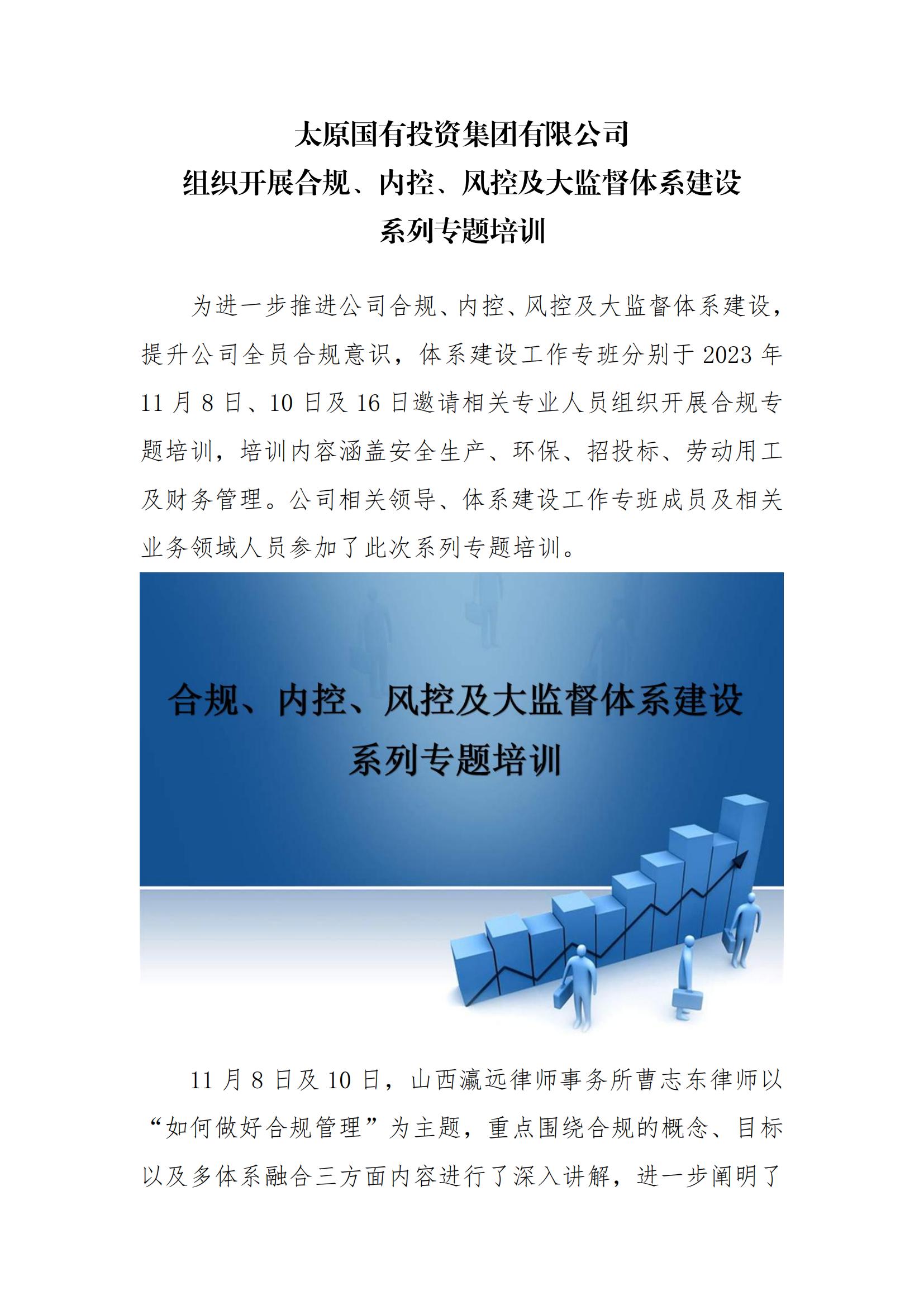太原國有投資集團有限公司組織開展合規(guī)、內(nèi)控、風控及大監(jiān)督體系建設系列專題培訓