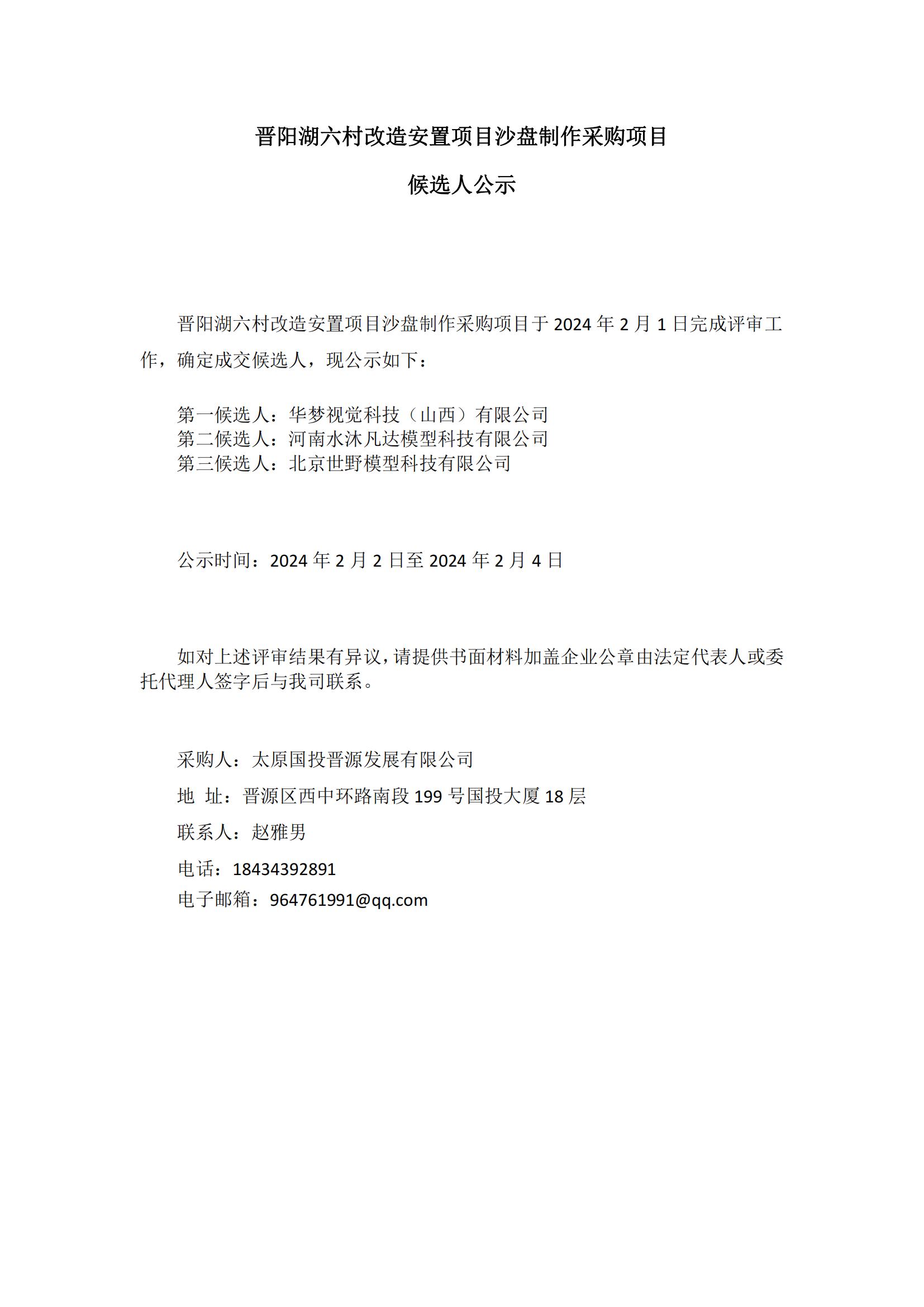 晉陽(yáng)湖六村改造安置項(xiàng)目沙盤(pán)制作采購(gòu)項(xiàng)目候選人公示