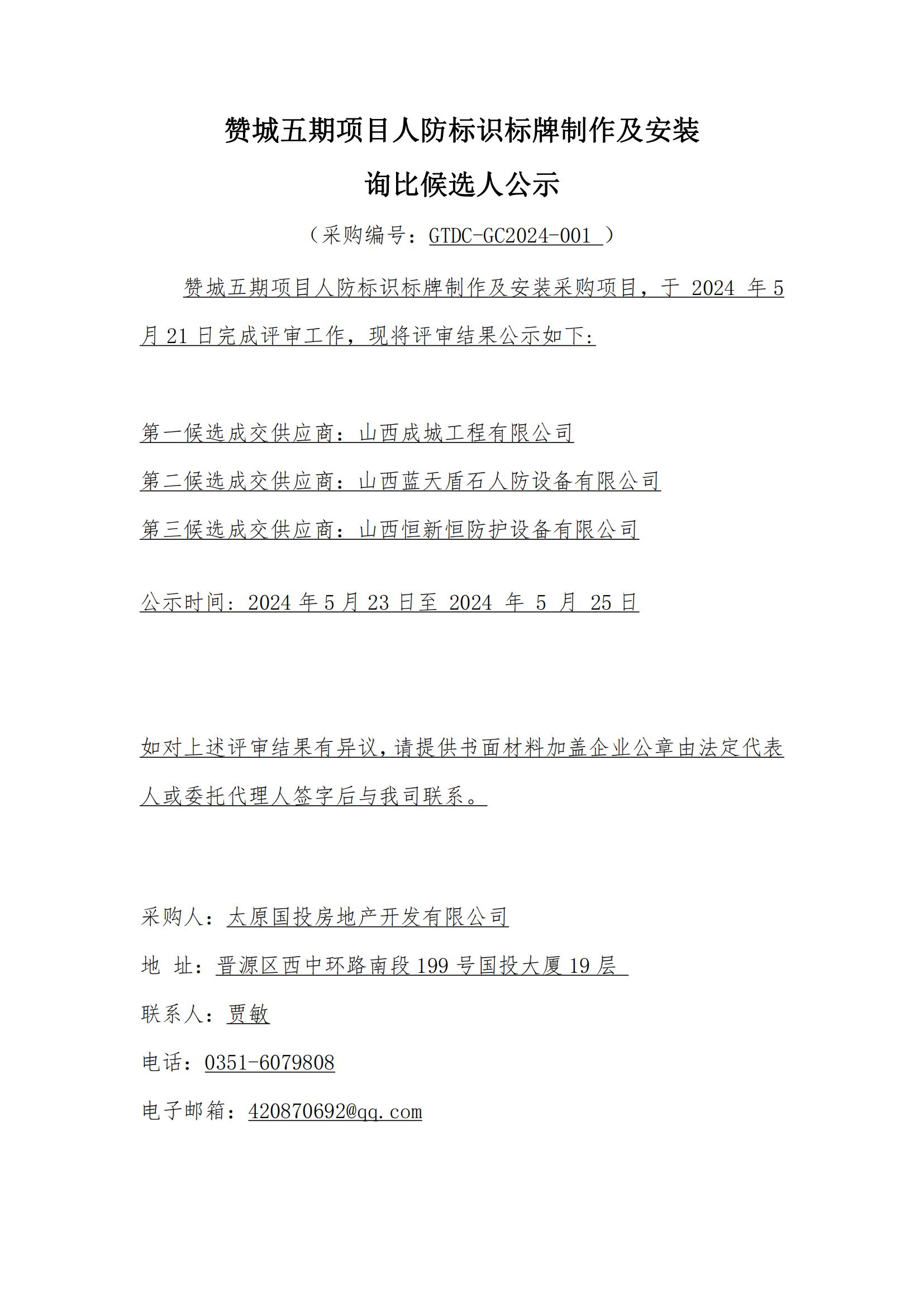 贊城五期項(xiàng)目人防標(biāo)識標(biāo)牌制作及安裝詢比候選人公示