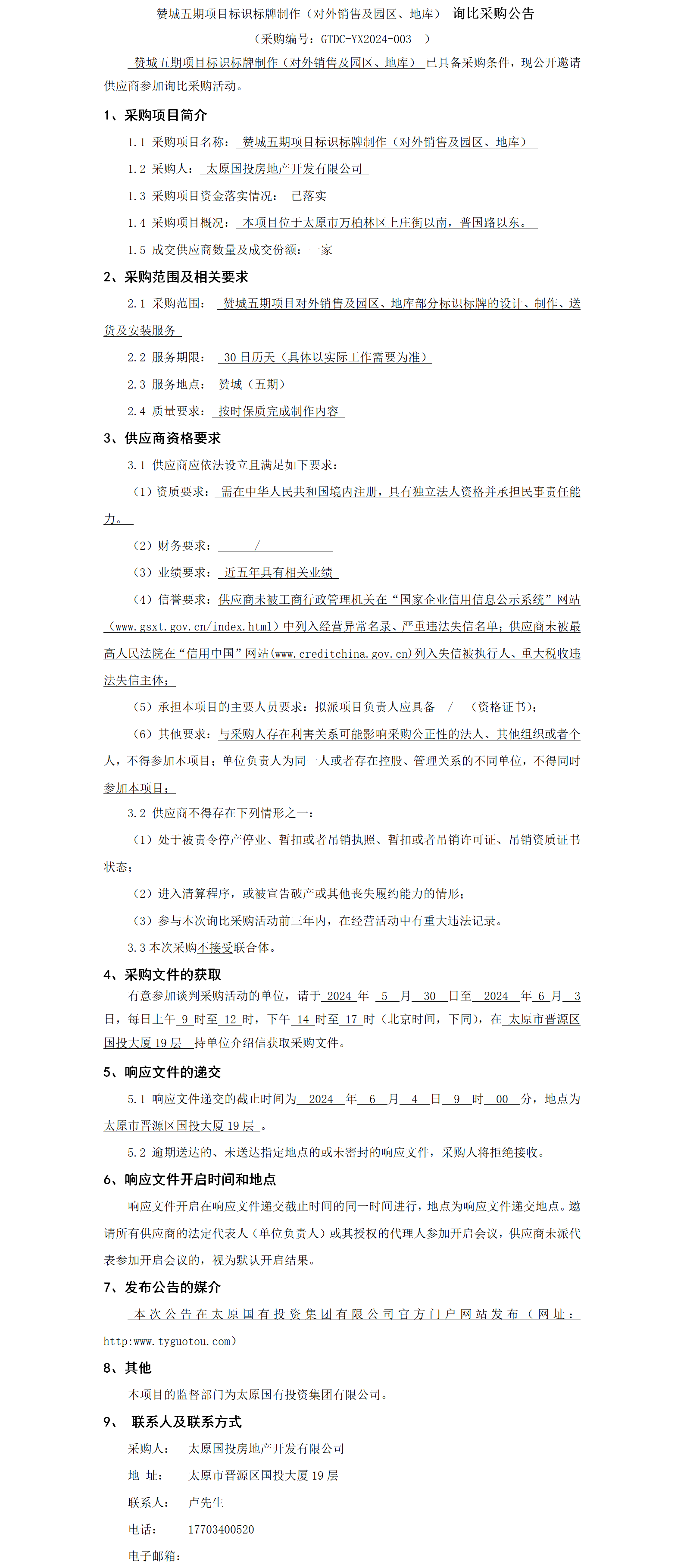 贊城五期項目標(biāo)識標(biāo)牌制作(對外銷售及園區(qū)、地庫) 詢比采購公告