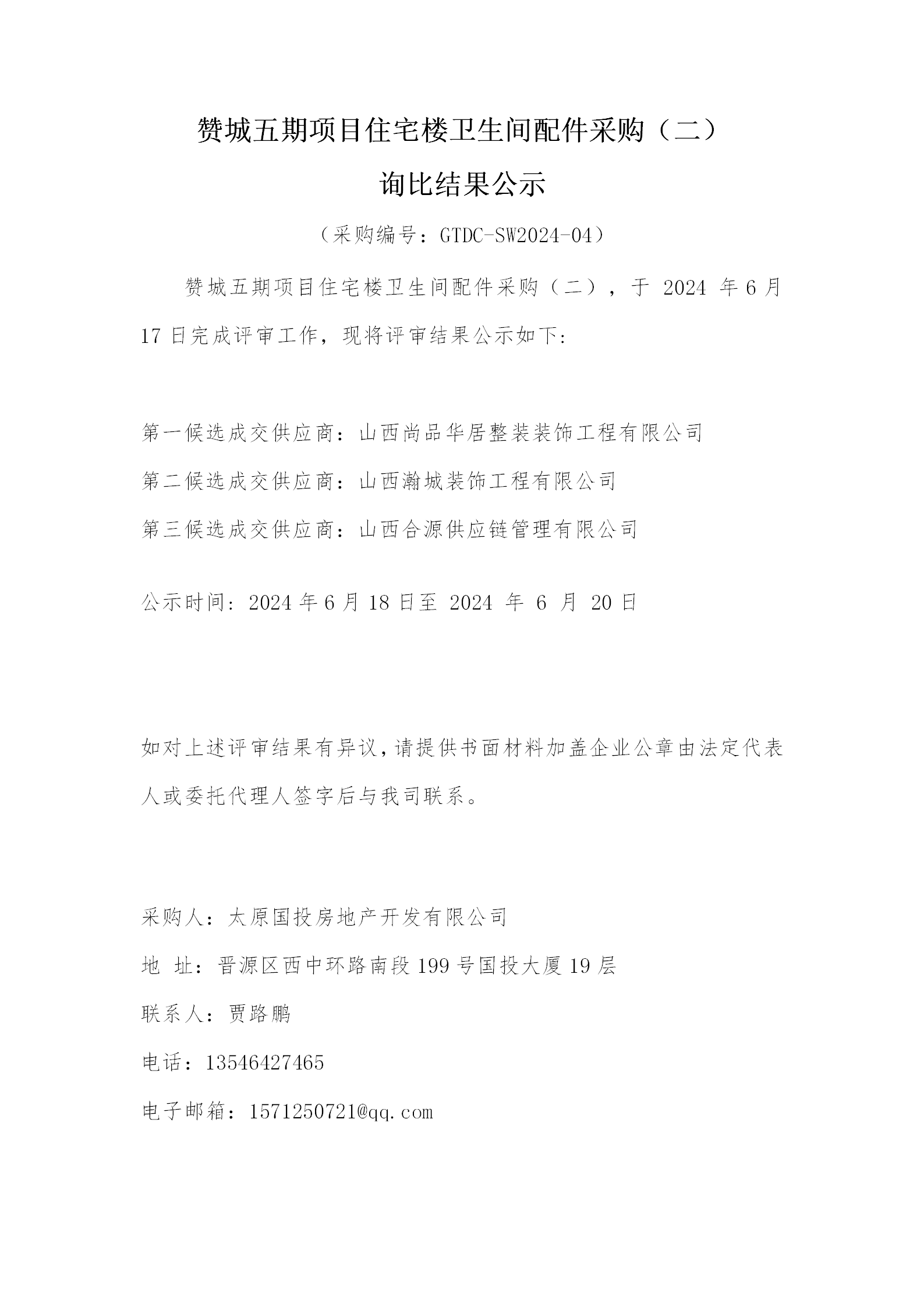 贊城五期項(xiàng)目住宅樓衛(wèi)生間配件采購(gòu)(二)詢(xún)比候選人公示