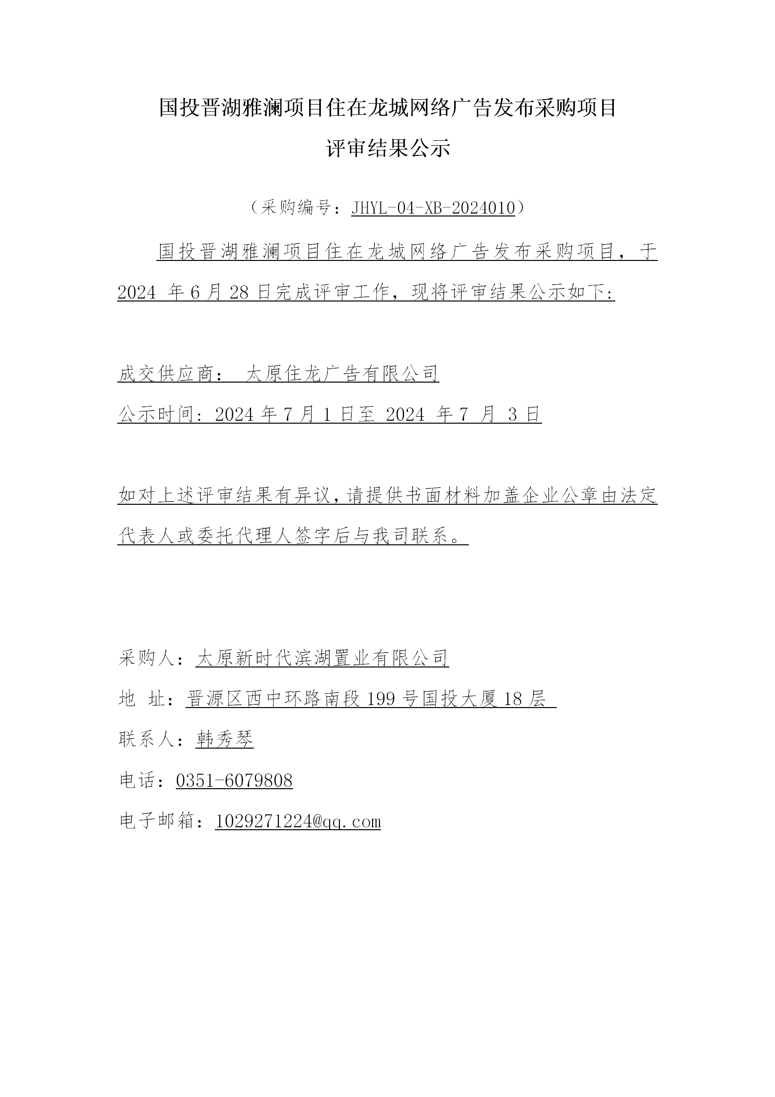 晉湖雅瀾項(xiàng)目住在龍城網(wǎng)絡(luò)廣告發(fā)布采購(gòu)項(xiàng)目評(píng)審結(jié)果公示