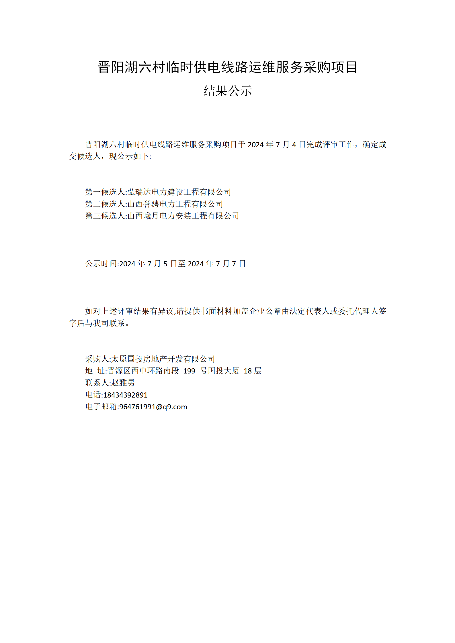 晉陽湖六村臨時(shí)供電線路運(yùn)維服務(wù)采購項(xiàng)目結(jié)果公示