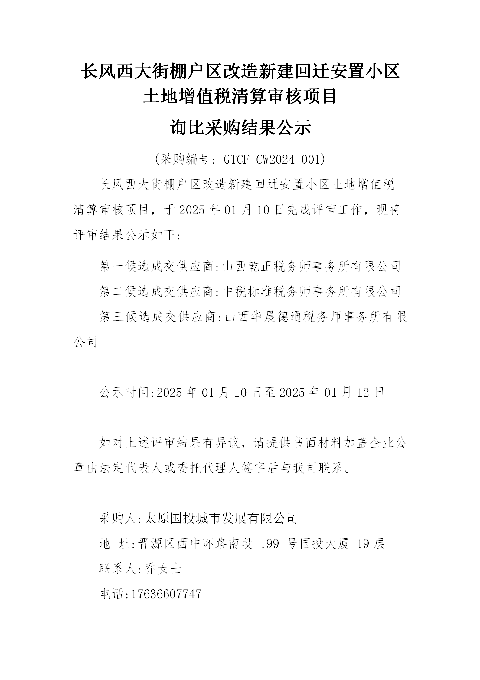 關(guān)于長風(fēng)西大街棚戶區(qū)改造新建回遷安置小區(qū)土地增值稅清算審核項目詢比采購結(jié)果公示的發(fā)布申請