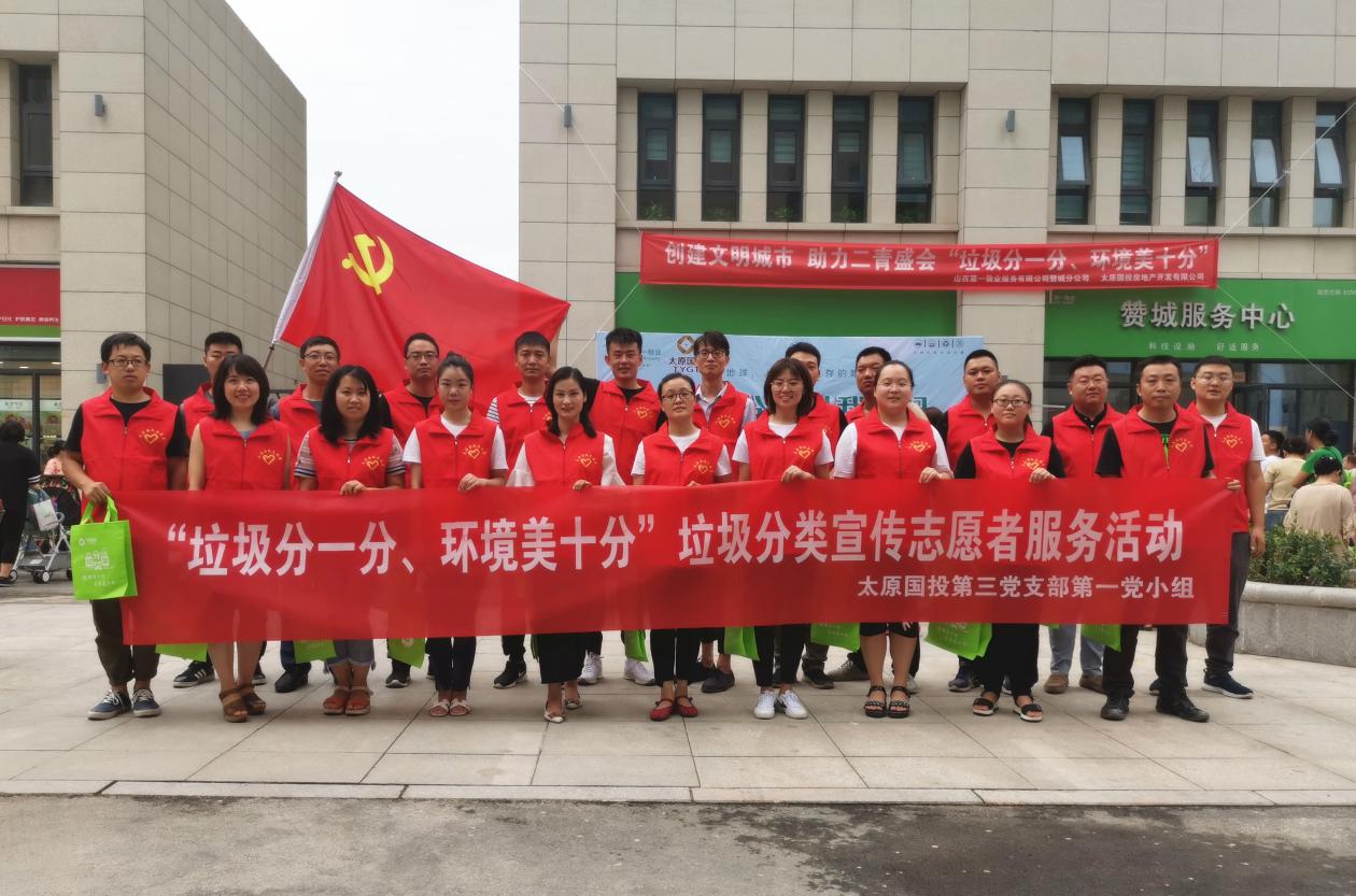 時(shí)值二青會(huì)舉辦之際,為創(chuàng)建文明城市、助力二青盛會(huì),響應(yīng)太原市作為全國(guó)首批46個(gè)垃圾分類試點(diǎn)城市之一,推行生活垃圾分類試點(diǎn)小區(qū)的號(hào)召,8月9日下午,太原國(guó)投集團(tuán)第三黨支部第一黨小組、太原國(guó)投房地產(chǎn)開(kāi)發(fā)有限公司攜手山西第一物業(yè)服務(wù)有限公司贊城分公司,在贊城小區(qū)共同開(kāi)展了以“垃圾分一分、環(huán)境美十分”為主題的垃圾分類宣傳志愿者服務(wù)活動(dòng)。黨小組全體黨員、入黨申請(qǐng)人及國(guó)投地產(chǎn)部分員工參加了此次活動(dòng)。