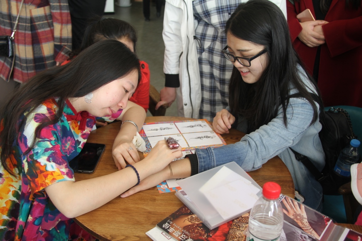 二層文創(chuàng)市集的體驗活動吸引了眾多嘉賓的參與。客戶對源自印度的海娜花充滿了好奇,排隊讓手繪師為自己繪上來自異域的祝福。